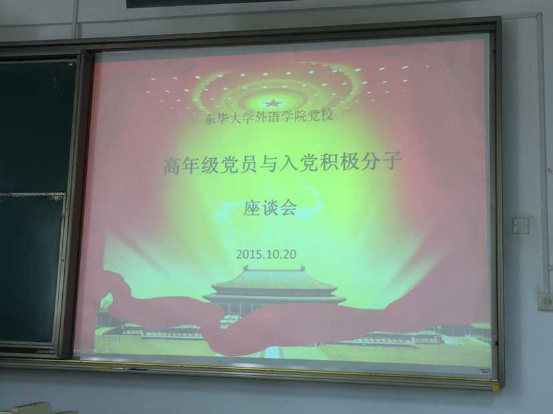 1 10月22日,beat365官方网站高年级学生党员与第68期党校入党积极分子座谈会在松江校区第一教学楼1105教室顺利举行,会议由入党积极分子培训班成员张丽华主持,为时两小时,内容丰富又充满意义,与会双方都表示收获颇丰。