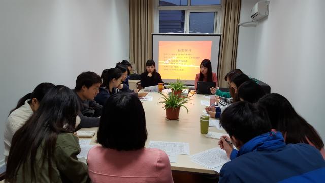 邓姗姗老师首先就预备党员培训班的基本情况作了详细介绍。此次预备党员培训内容主要分为三个板块,分别为校级党校集中辅导、学院党校特色活动和学员自主学习。除了全校预备党员共同参与的专题讲座之外,学院党校充分发挥学院特色,邀请学院张淑琴教授开设讲座《永远的莎士比亚》、关工委老师《铭记抗战历史,弘扬抗战精神》、《大学生如何践行社会主义核心价值观》等主题讲座,融合莎翁经典与社会主义核心价值观,让预备党员以史为鉴,以史为镜,品味经典,内外求索,明辨笃行,不断进取。同时开展“传承红色经典,弘扬党员精神”读书会、“知行合一,凝心聚力”团队训练等特色活动,以丰富多样的形式对预备党员进行教育。邓老师着重要求各位学员要以认真的态度、饱满的热情投入培训班的学习中,按时参加培训,严格遵守培训班纪律,强调学员要积极转换角色,时刻以党员身份严格要求自己,提高自我认识,从思想上积极向党组织靠拢,早日成为一名中共正式党员。