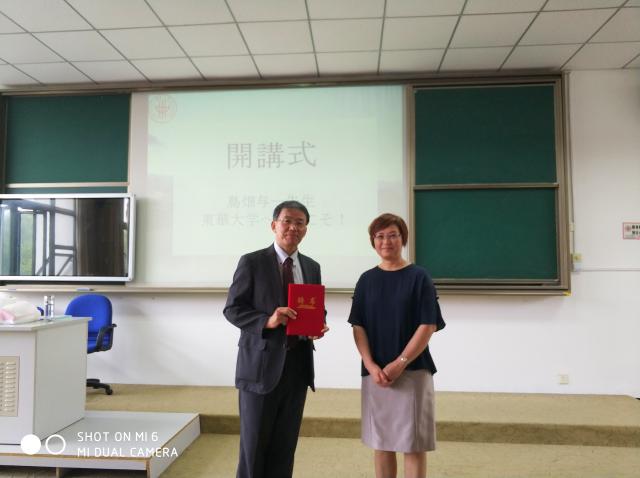 集中讲学的最后一天举行了结业仪式,鸟畑与一教授的友善和耐心讲解给听讲学生留下深刻印象,而东华师生的热情接待也让鸟畑与一教授十分感动。