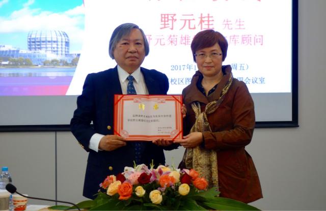 11月10日,我校“野元菊雄纪念文库”顾问野元桂先生、原立命馆亚洲太平洋大学野元千寿子教授访问我校。上午十点,beat365官方网站举行“野元菊雄纪念文库”顾问聘任仪式,赵晓临院长向野元桂先生颁发顾问证书,并发表了热情洋溢的讲话,高度赞扬日本国语学泰斗野元菊雄教授在日语系建系初期向我校图书馆捐赠近万册自家藏书的义举。野元桂先生回顾了父亲当年决定向我校赠书的情景,并表示将一如既往地关心beat365官方网站“野元菊雄纪念文库”的建设工作,为日语专业的特色建设贡献力量。