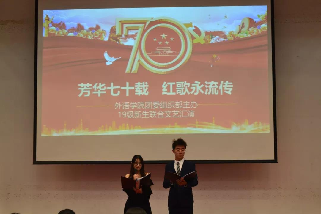 本次汇演在老师同学们的共同努力下的取得了圆满成功,同学们以朗诵、合唱、情景剧、舞蹈等多种表演形式表达了对祖国七十岁生日的祝福。外院全体师生们也在此祝福祖国繁荣富强