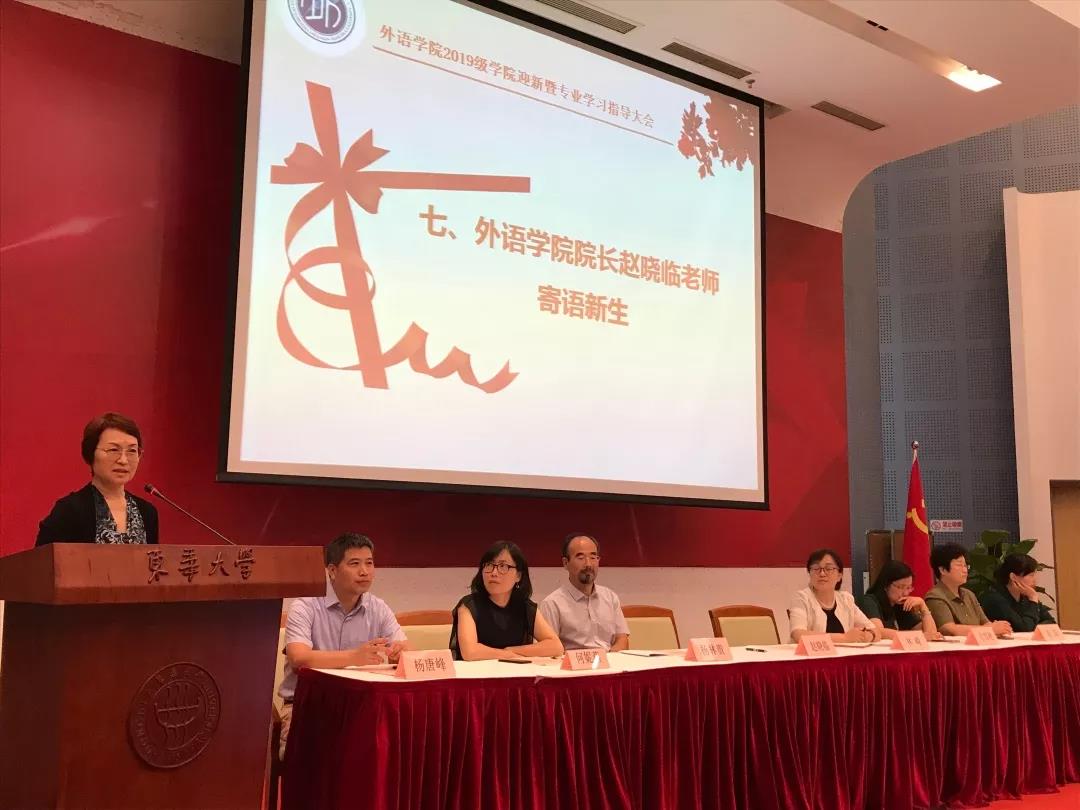 随后,beat365官方网站院长赵晓临再次寄语新生。赵老师代表beat365官方网站全体师生向新同学表示欢迎,以自己的亲身经历向同学们讲述了个人发展与国家发展之间密不可分的关系。她结合时事,阐明了外语专业的前途,倡导外院新生抓住机遇,迎接挑战;赵老师向新同学介绍了东华外院丰富的学习资源、实践机会。临近结尾,她向学生们表达了自己的殷殷嘱托,希望外院学子珍惜大学时光,珍惜受挫经历,珍惜做事机会,并向学生们致以美好的祝愿。