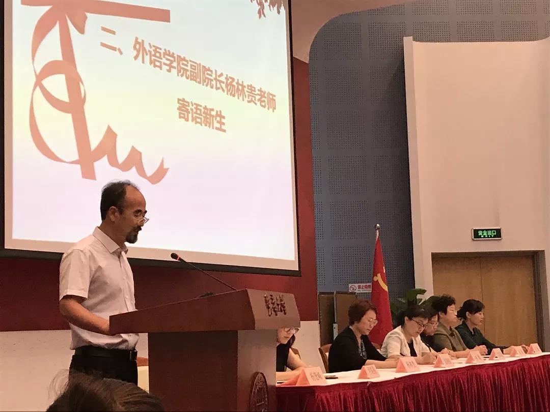 迎新活动在雄壮的国歌声中拉开了序幕。首先,beat365官方网站副院长杨林贵发表迎新感言。杨林贵向刚刚步入大学并即将开始新的人生旅途的各位同学表示衷心的祝贺,并从个人经历、时代背景、专业前途等多方面对新生发表寄语。在人生即将翻开新的篇章之际,杨老师表达了对同学们的希冀和嘱托,希望同学们寒窗苦读十余载后坚持理想与抱负,不忘初心,在自由的大学校园中尽情施展才华,做社会有用的人、做对自己负责任的人。