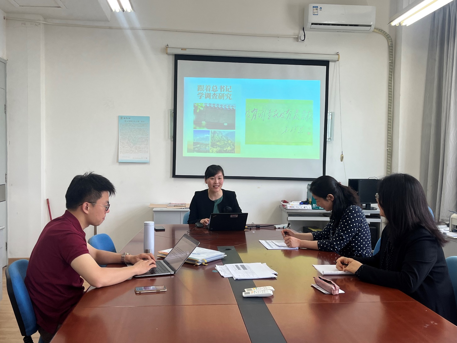 (5月23日,日语系党支部集体学习习近平总书记《在学习贯彻习近平新时代中国特色社会主义思想主题教育工作会议上的讲话》精神,并交流学习体会)