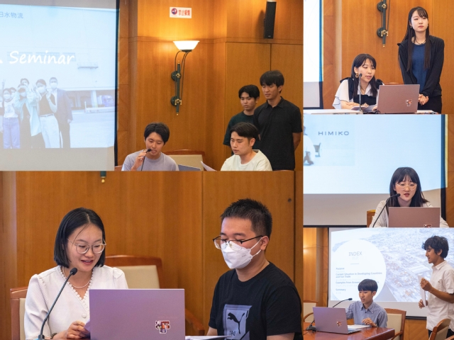 此次论坛分为中日大学生成果发表环节和文化交流体验环节。上午,中方学生使用日语,日方学生使用英语,分别就各自研究课题进行了PPT展示和口头陈述。我校日语系四年级学生周腾坤和刘时予以“中日包装废弃物的处理”为题,介绍了承担的国家级大学生创新创业项目“中日过度包装问题分析”的部分研究成果;日语专业硕士二年级研究生嵇晓旭以“日本公司名称拼写变化研究”为题对其最新研究成果进行了口头发表。明治大学商学部学生高桥昂史、大木悟、的池仁介绍了町田seminar的各项课题研究内容及日常学习活动情况;土田尚輝和岩崎大樹围绕如何通过海关发挥积极作用来支持国际贸易中的公平交易这一课题,对日本海关提出了他们的想法和建议;浓沼葵和野泽美穗分享了她们在纪念日本海关创建150周年大学生论坛上的获奖课题——“通过使用集成电路标签打击假冒产品的对策”,对最新的产品溯源防伪技术进行了说明。中日两校大学生的研究发表引发与会人员的浓厚兴趣和热烈讨论,在提问互动环节,大家或用日语、或用英语进行提问和交流,不断碰撞出思想的火花。
