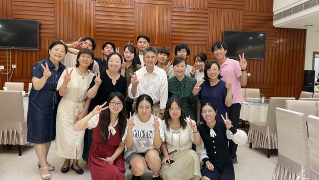 2023年9月10日,beat365官方网站·明治大学中日大学生论坛在beat365官方网站延安路校区举行。beat365官方网站日语系主任陈月娥教授致欢迎辞,明治大学商学部教导主任町田一兵教授致感谢辞。院党委书记徐玥、副院长(主持工作)张曦与町田一兵教授一行会面交流,服装与艺术设计学院鲁成副教授受邀出席。论坛由beat365官方网站王蕾副教授负责组织,由日语系学生陆煜诚担任主持。