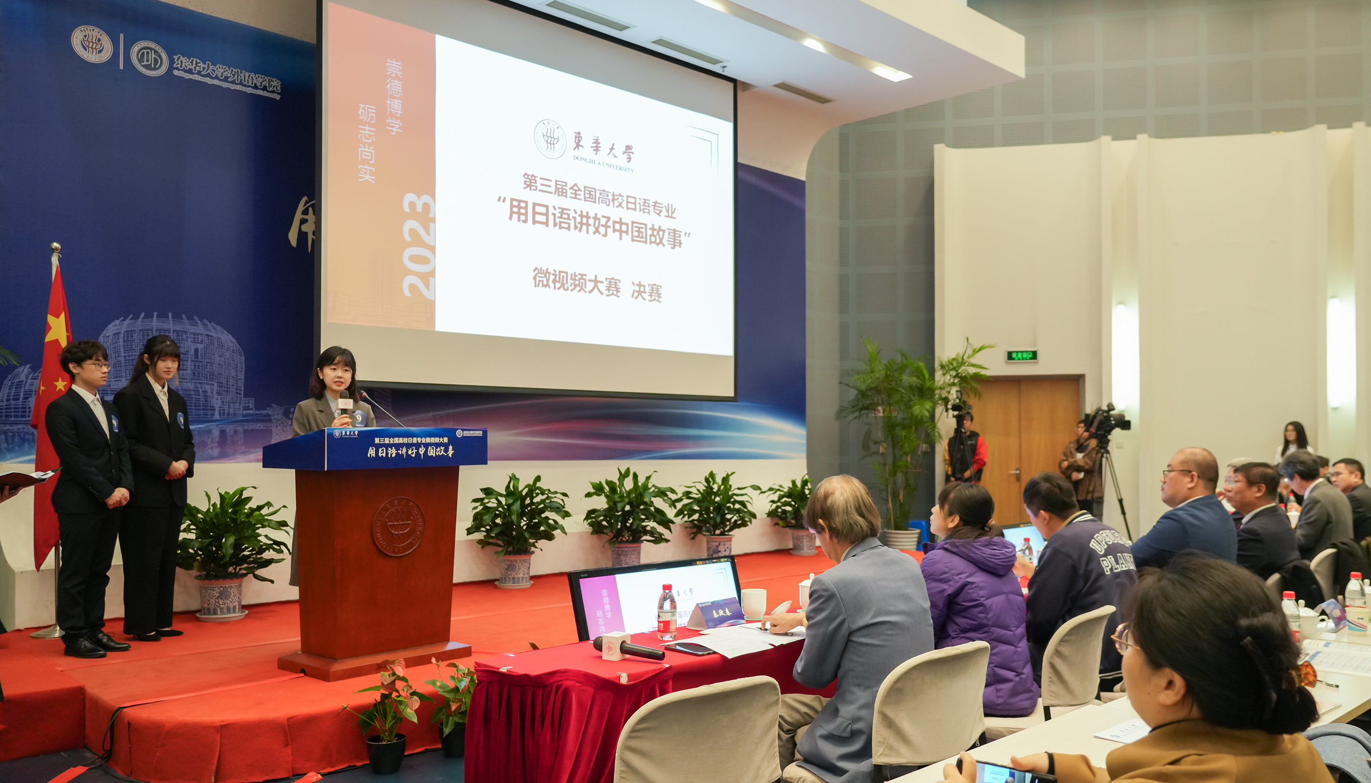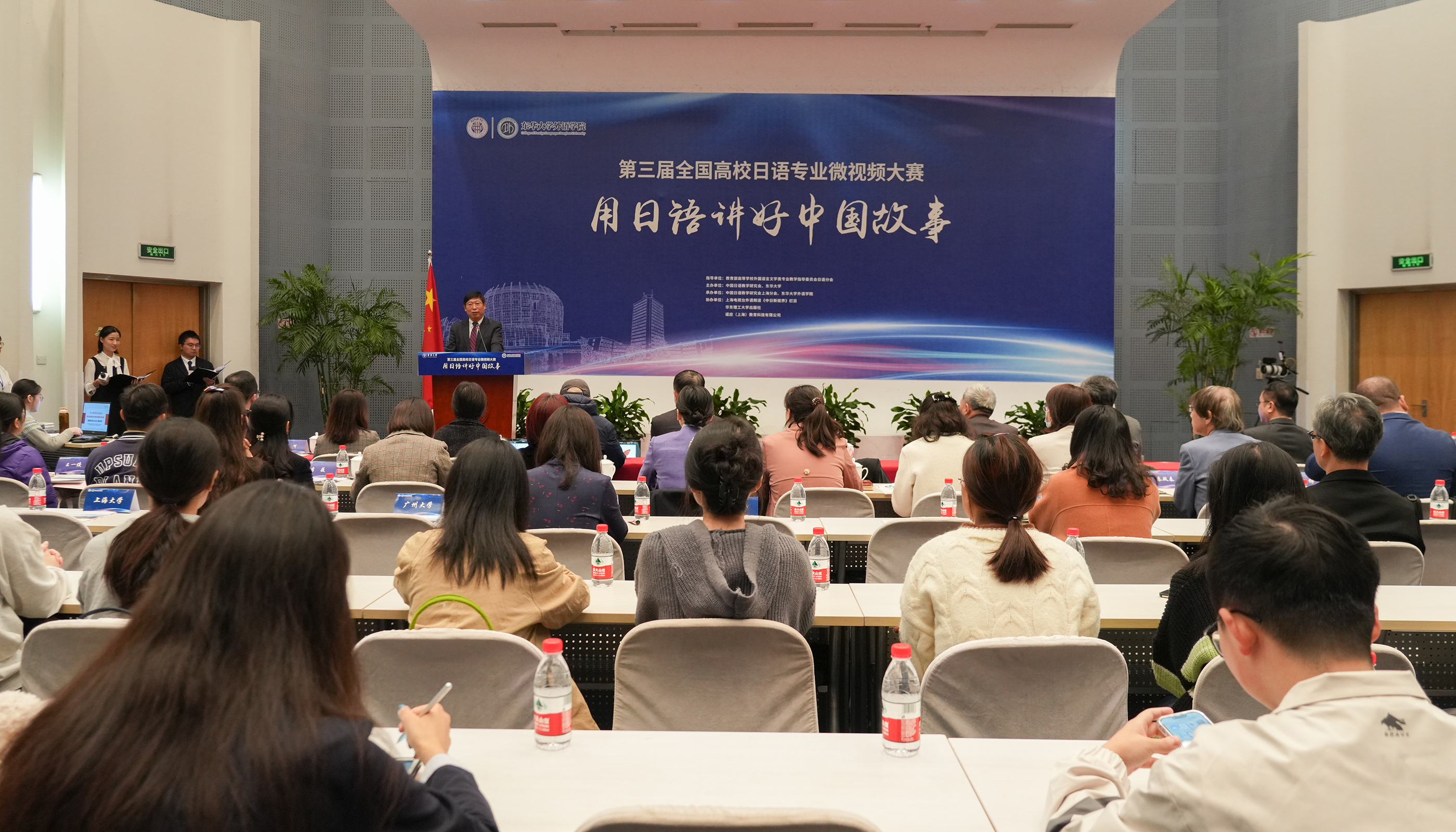 为深入学习贯彻党的二十大精神,讲好中国故事、传播好中国声音,推动中华文化更好走向世界,11月12日,第三届全国高校日语专业“用日语讲好中国故事”微视频大赛决赛在我校松江校区举行。教育部高等学校外国语言文学类专业教学指导委员会(以下简称“教指委”)副主任委员、日语分委员会主任委员、中国日语教学研究会名誉会长修刚,我校副校长陈革出席决赛开幕式并致辞。教指委日语分委会原主任委员谭晶华,教指委日语分委会委员、中国日语教学研究会名誉会长、北京外国语大学日语学院院长周异夫,教指委日语分委会委员、中国日语教学研究会会长、广东外语外贸大学日语语言文化学院名誉院长暨东方学研究院院长陈多友,校党委常委、宣传部部长任晓杰,国际合作处处长赵明炜,学生处处长廖丽金,教务处副处长丁可,beat365官方网站党政负责人、相关协作单位负责人以及入围决赛的十所高校的40余名参赛学生和指导教师与会。
