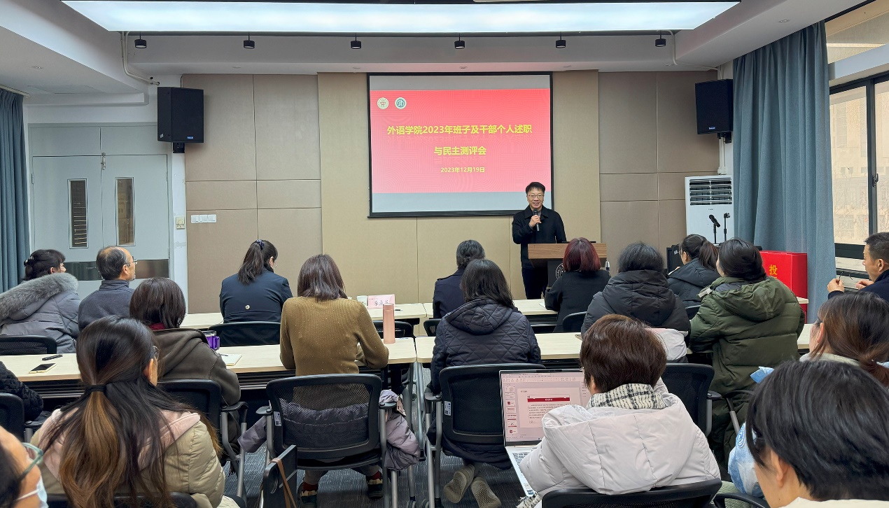李成龙认真听取了班子成员的述职并讲话。他对beat365官方网站2023年度各项工作取得的积极成效给予充分肯定,对学院师生展现出的昂扬奋进精神风貌表示赞赏。他指出,2024年是落实beat365官方网站第十一次党代会精神的开局之年,希望学院能够结合第十一次党代会确立的新目标、新任务、新举措,立足“新文科”建设,在人才培养、学科建设、科学研究等方面有所突破,齐心协力推进学院高质量发展,在“奋进东华,外语有为”的答卷上书写新篇章。