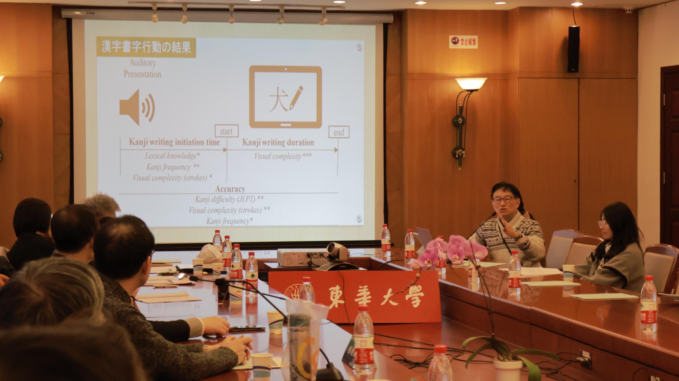 研讨会分为“语言与翻译”和“文学与文化”两个分会场。在“语言与翻译”分科会上,来自名古屋大学的玉冈贺津雄教授、杉村泰教授、丸尾诚教授和胜川裕子副教授分别围绕“越南日语学习者的汉字书写机制”“日语复合动词V1-通す」V1-抜く」的语义差异”“中文动补短语‘V够’语义生成机制”和“汉语介词‘离’的空间与时间间隔”等问题进行了探讨。beat365官方网站陈月娥教授从思想史的视角对“西村茂树的文字观”进行了分析。上海外国语大学毛文伟教授、王晓华副教授和须军博士分别就“基于熟练程度的中国日语学习者副词使用情况”“作为意志表达的日语「ツモリダ」的时体系统”和“接续助词「ものを」的语法化”等问题进行了研究分享。