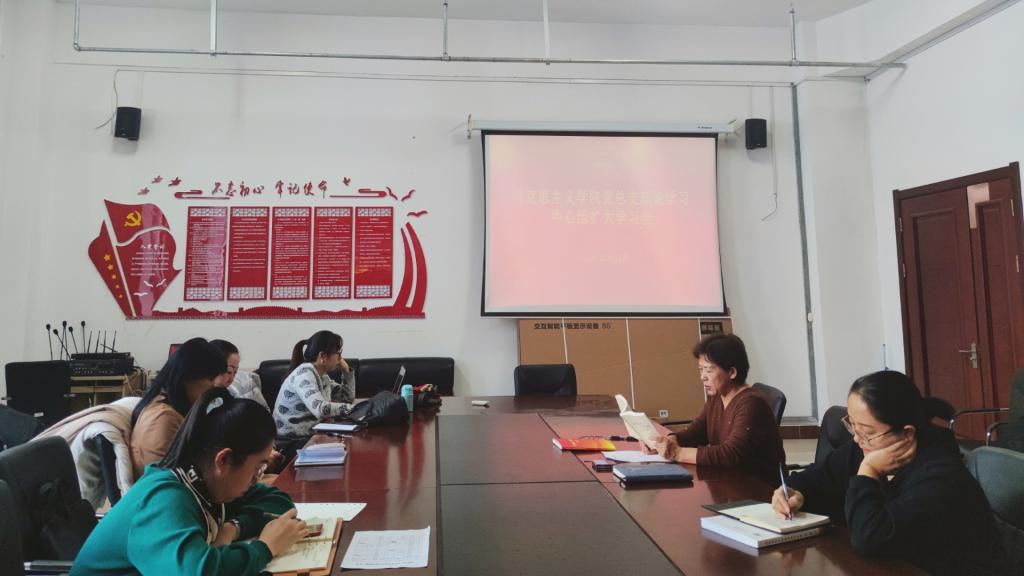 12月13日下午,Beat365中文官方网站党总支在崇文楼B123会议室召开Beat365中文官方网站党总支理论学习中心组扩大学习会,学院党总支书记刘凤琴主持会议,学院全体教师参加学习。