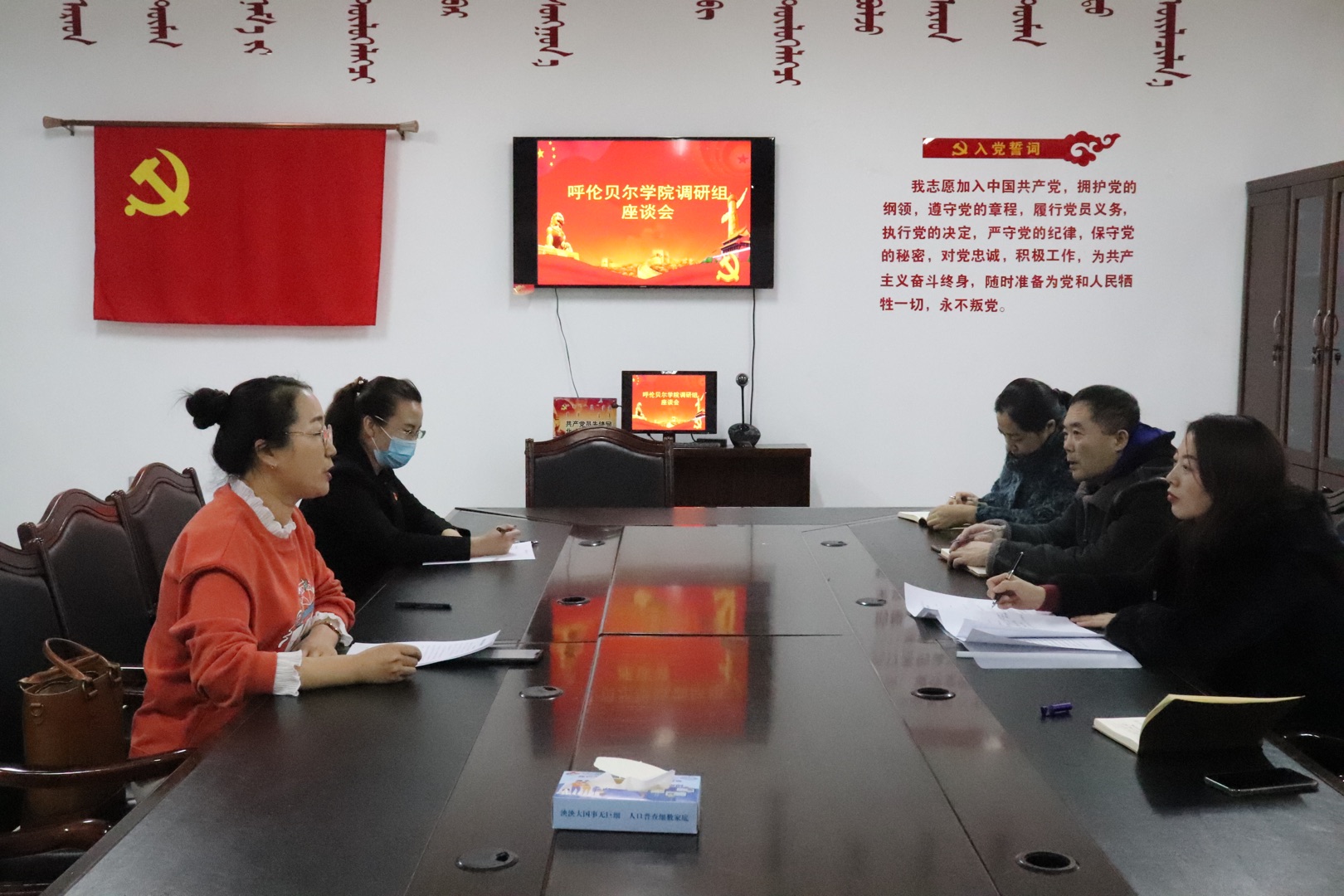 12月25日,铸牢中华民族共同体意识研究中心办公室主任、Beat365中文官方网站院长李俏带领中心成员和民族理论与民族政策课教师团队深入陈巴尔虎旗民委、巴彦社区就深入贯彻落实习近平总书记关于民族工作重要论述,进一步深入开展铸牢中华民族共同体意识研究工作开展调研,陈旗民委党组成员、副主任乌仁高娃和相关科室负责人参加调研座谈会。