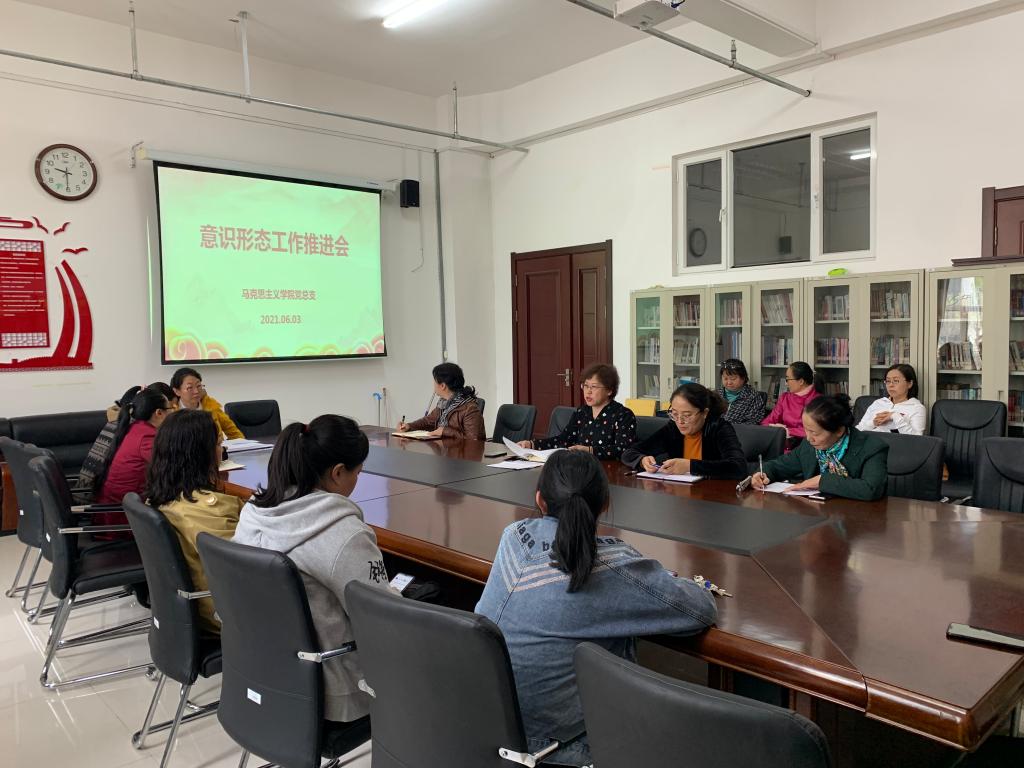 2021年6月3日,Beat365中文官方网站召开意识形态工作推进会。学院党总支书记刘凤琴、副院长吴秀芳和学院教师参加会议。