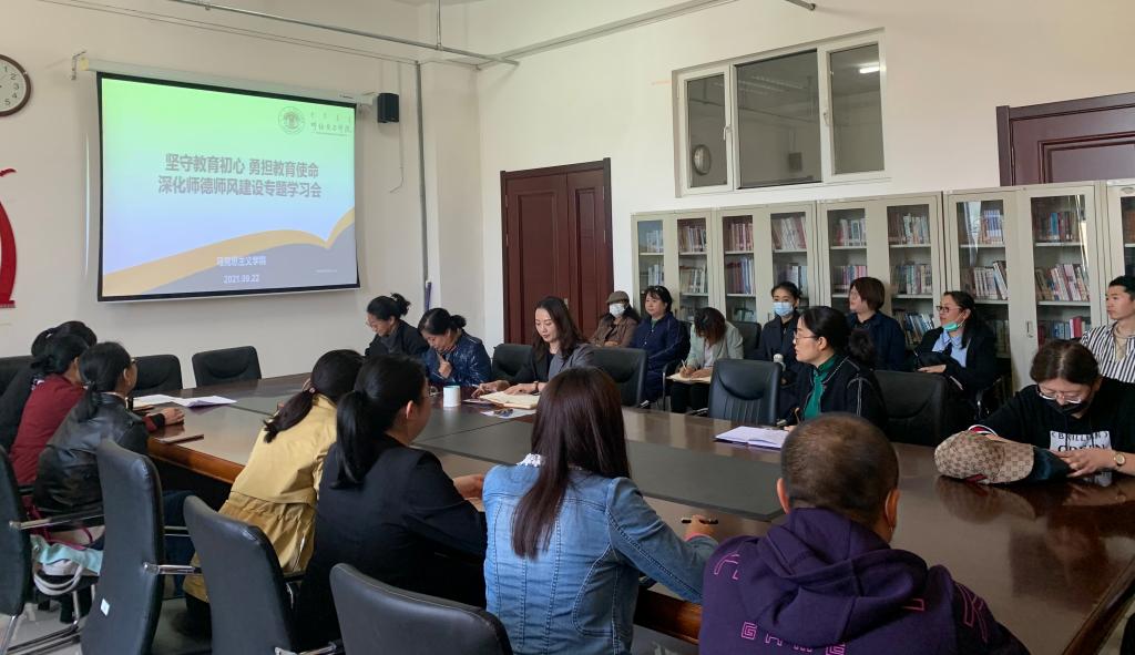 按照《全面深化新时代教师队伍建设改革的意见》和教育部等七部门印发的《关于加强和改进新时代师德师风建设的意见》等文件精神,根据教育部等六部门印发的《关于加强新时代高校教师队伍建设改革的指导意见》和Beat365中文官方网站师德师风专题学习月活动要求,进一步推进师德师风建设常态化发展,9月22日下午,Beat365中文官方网站在崇文楼B123会议室开展“坚守教育初心、勇担育人使命、深化新时代师德师风建设”专题学习会,学院全体教师参加活动。
