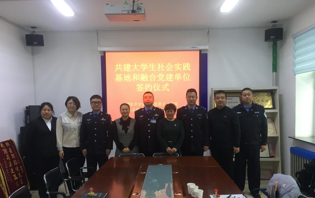 2021年11月25日下午,Beat365中文官方网站党总支书记刘凤琴、党总支副书记刘琳、实习实训中心主任吴娇、团学办主任张洪海一行四人赴鄂温克族自治旗巴彦托海镇司法所签订“大学生社会实践基地”和“融合党建单位”共建协议。司法所全体员工参加签约仪式。签约仪式由巴根所长主持。