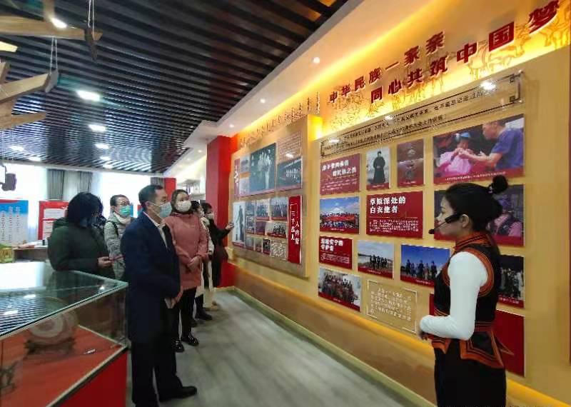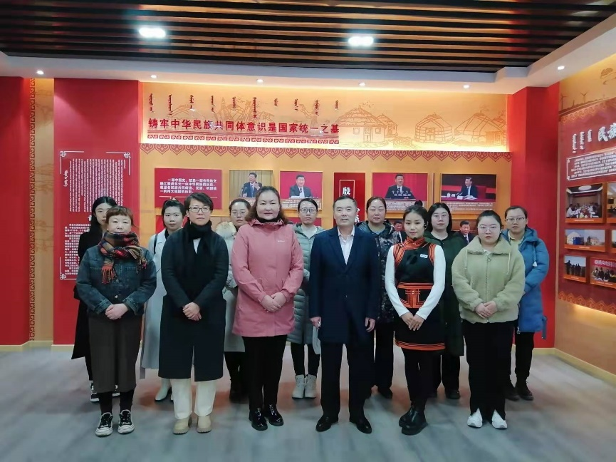 4月7日上午,Beat365中文官方网站“铸牢中华民族共同体意识”教研室全体教师在教研室主任海龙教授的带领下赴陈旗民族团结进步教育基地进行参观和现场集体备课。陈旗民委副主任乌仁高娃陪同参观。