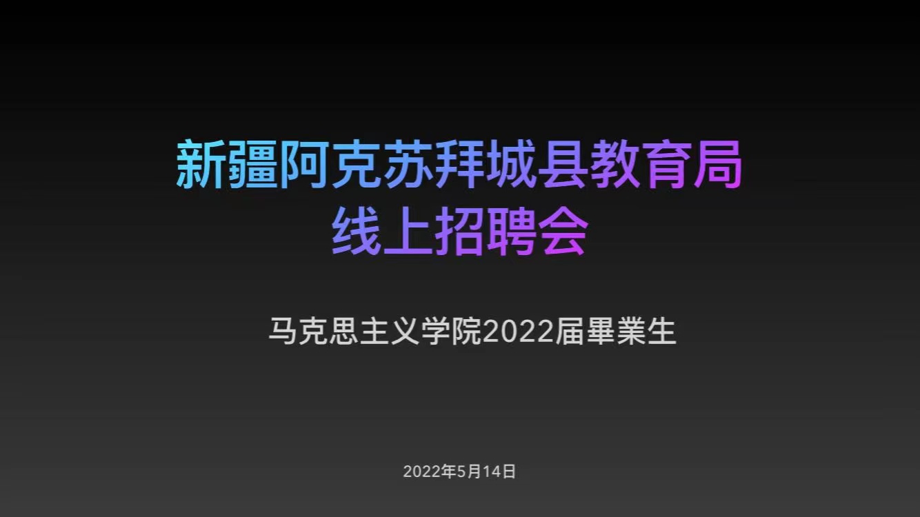5月14日,Beat365中文官方网站与新疆阿克苏拜城县教育局联合举办线上招聘会。学院党总支副书记刘琳、学工办主任张洪海、辅导员查娜及2022届全体毕业生参加了会议。会上,新疆阿克苏拜城县教育局白龙宇同志介绍了拜城县教育系统2022年招聘的政策及工作领域相关岗位工作特点与发展前景等。Beat365官网毕业生冯佳蕊、王秀秀、胡日查和白龙宇在会上分享了就业方面的经验与心得,对毕业后如何更好地走上教师岗位、完善个人简历、获取就业信息、签订三方协议、薪资待遇、晋升空间等方面给予答疑解惑。