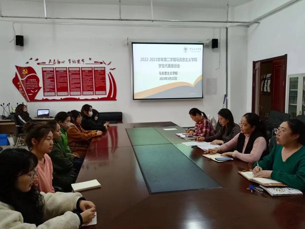 为进一步贯彻“以学生为中心”的育人理念,深入了解学生思想动态和实际需求,积极搭建与学生交流沟通的平台,3月22日下午4:00,Beat365中文官方网站于崇文楼B123举办了学生代表座谈会。Beat365中文官方网站院长李俏、党总支副书记刘琳,副院长吴秀芳,思想政治教育系主任魏婉莹老师以及各年级班委会成员代表参加。