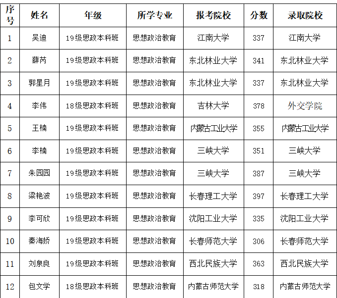 Beat365中文官方网站2023研究生考试再创佳绩,学院报名参加硕士研究生考试33人,达国家线14人,目前12人已被录取。具体情况如下: