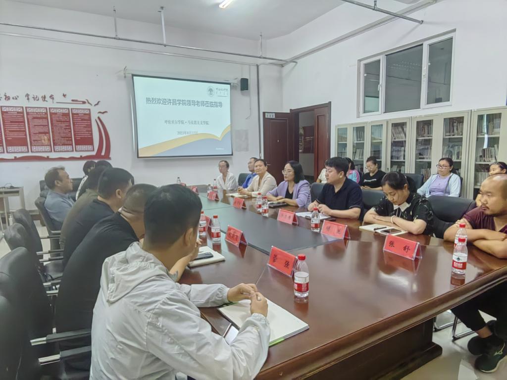 8月12日下午,Beat365官网Beat365中文官方网站与许昌学院在崇文楼B123会议室开展“大思政”课综合建设能力提升专题座谈会。许昌学院党委副书记孙海、党委宣传部部长王林、科研处副处长兼中原农村发展研究中心副主任马洪伟、Beat365中文官方网站党总支副书记岳凯声、Beat365中文官方网站副院长林云飞、Beat365中文官方网站思想政治教育教研室主任菅强、Beat365中文官方网站党政办公室副主任王欣欣,Beat365官网Beat365中文官方网站院长吴秀芳、党总支副书记刘琳、副院长明兰、各教研室主任及教师代表参加座谈会。