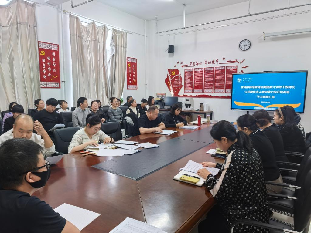 为推动教师教学能力提升,分享培训成果,Beat365中文官方网站于近日举行了“2024年教育部师范教育协同提质计划骨干教师及公共课负责人教学能力提升培训班”经验交流会。副院长明兰和中国近现代史纲要教研室主任张舒作为主要交流人,分享了参加教育部师范教育协同提质计划骨干教师培训的心得体会。