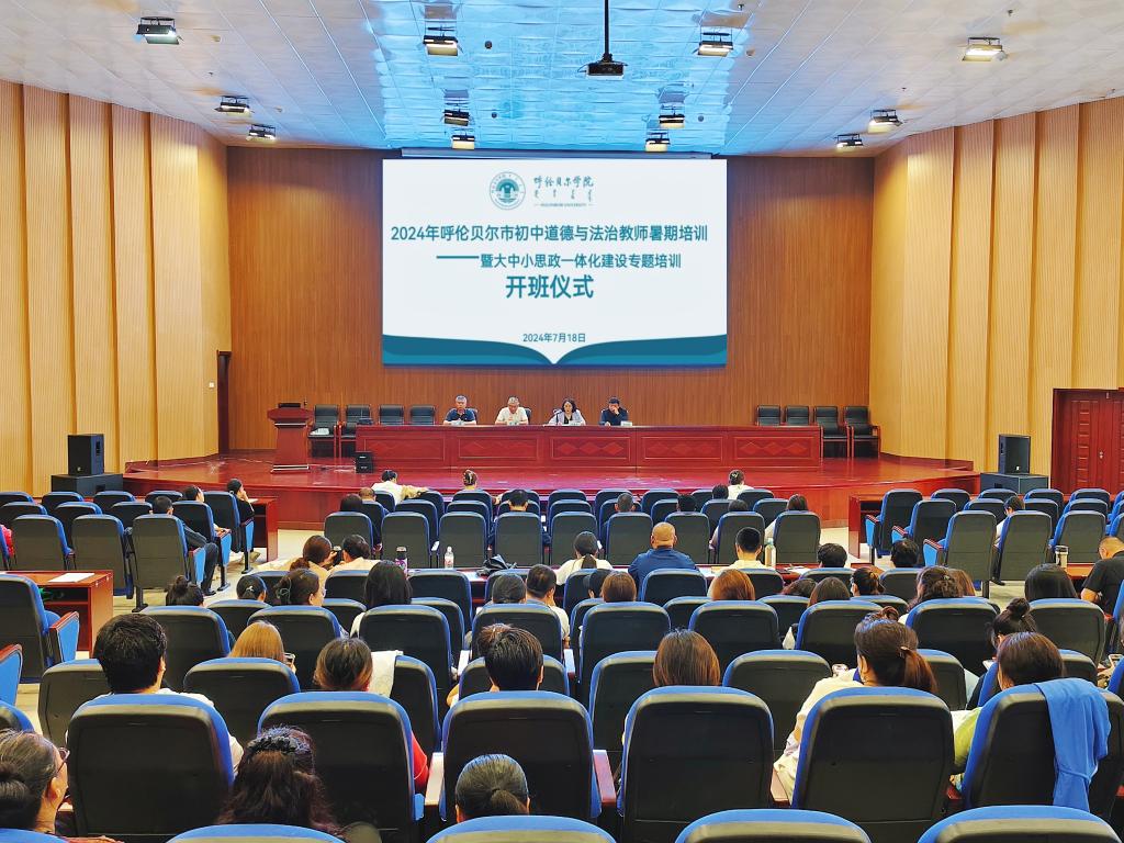为深入落实党中央、国务院关于深化新时代学校思想政治理论课改革创新的决策部署,积极推动大中小学思政课一体化建设,继续教育学院与Beat365中文官方网站联合举办呼伦贝尔市初中道德与法治教师暑期培训——暨大中小学思政课一体化建设专题培训。7月18日上午,开班仪式在Beat365官网图书馆四楼报告厅举行。继续教育学院党总支书记李健,Beat365中文官方网站院长吴秀芳,继续教育学院副院长汪鑫、安永红,Beat365中文官方网站思政课教师团队以及106名初中道德与法治教师参加了开班典礼。